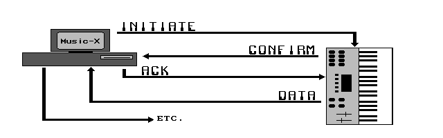 If you instrument does require handshaking, then you must also provide Confirm and/or Ack ("Acknowledge") strings. These strings each represent the message "I am ready!" Confirm is sent by the instrument (and so Music-X must be told how to recognize it), and Ack is sent by Music-X. Depending on the system exclusive implementation, your instrument expects a particular sequence of Confirm/Data/Ack messages. The Music-X manual is really quite good about explaining this mechanism; however, you will need to spend some time with your instrument's system exclusive documentation to figure out what messages need to be used.