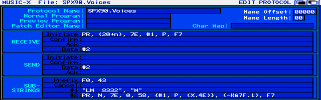 As of this writing, I still have not managed to get Music-X to understand SPX-90 patch names. If anybody else can figure out a method, please contact me.